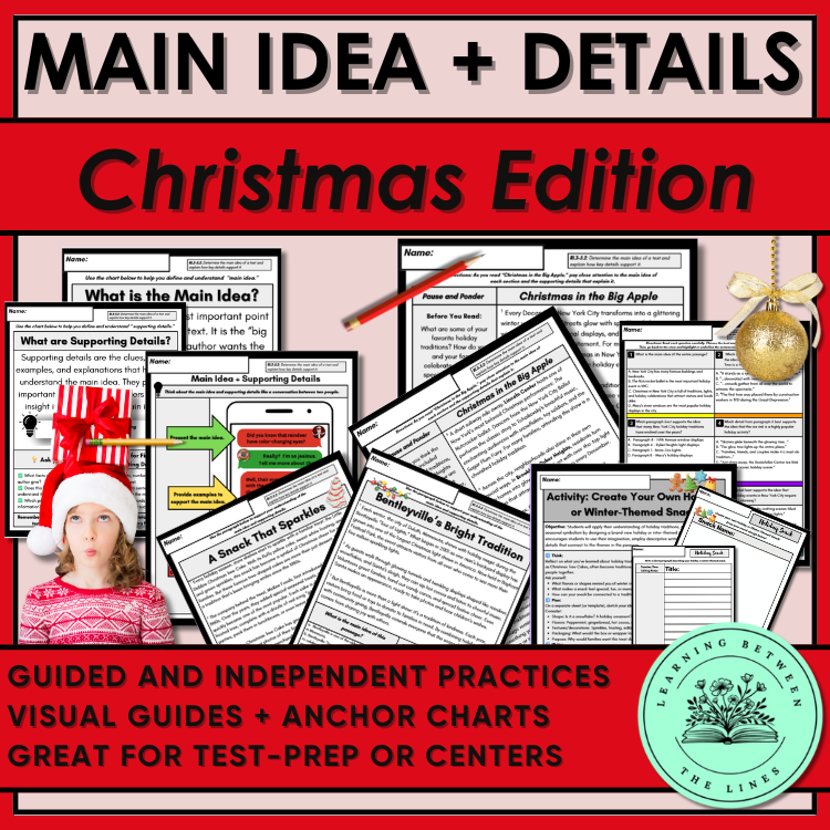 Light up your literacy block with this Christmas-themed nonfiction reading resource designed to help students master main idea and supporting details. Inspired by the structure of i-Ready–style lessons, this set blends guided instruction, scaffolded modeling, and independent practice — perfect for building confidence and assessing readiness for PSSA, STAAR, AIR, and PARCC.