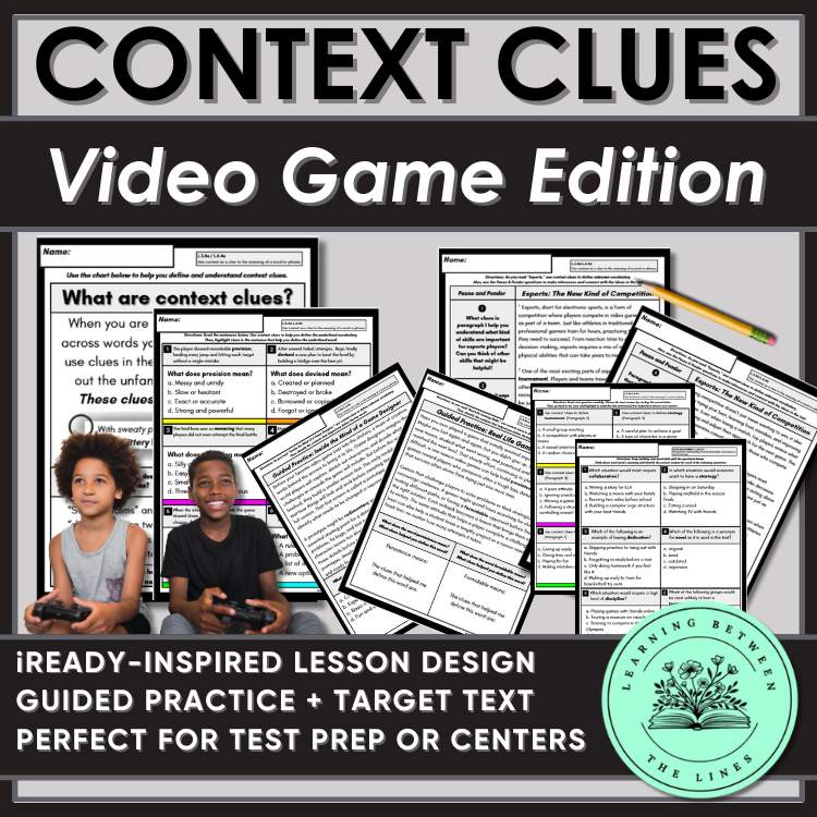 Looking for a way to make context clue practice engaging and skill-focused? This Video Game Skill-Based Reading resource brings vocabulary strategy instruction to life with high-interest passages, scaffolded practice, and comprehension questions—all designed with an iReady-style structure teachers love.