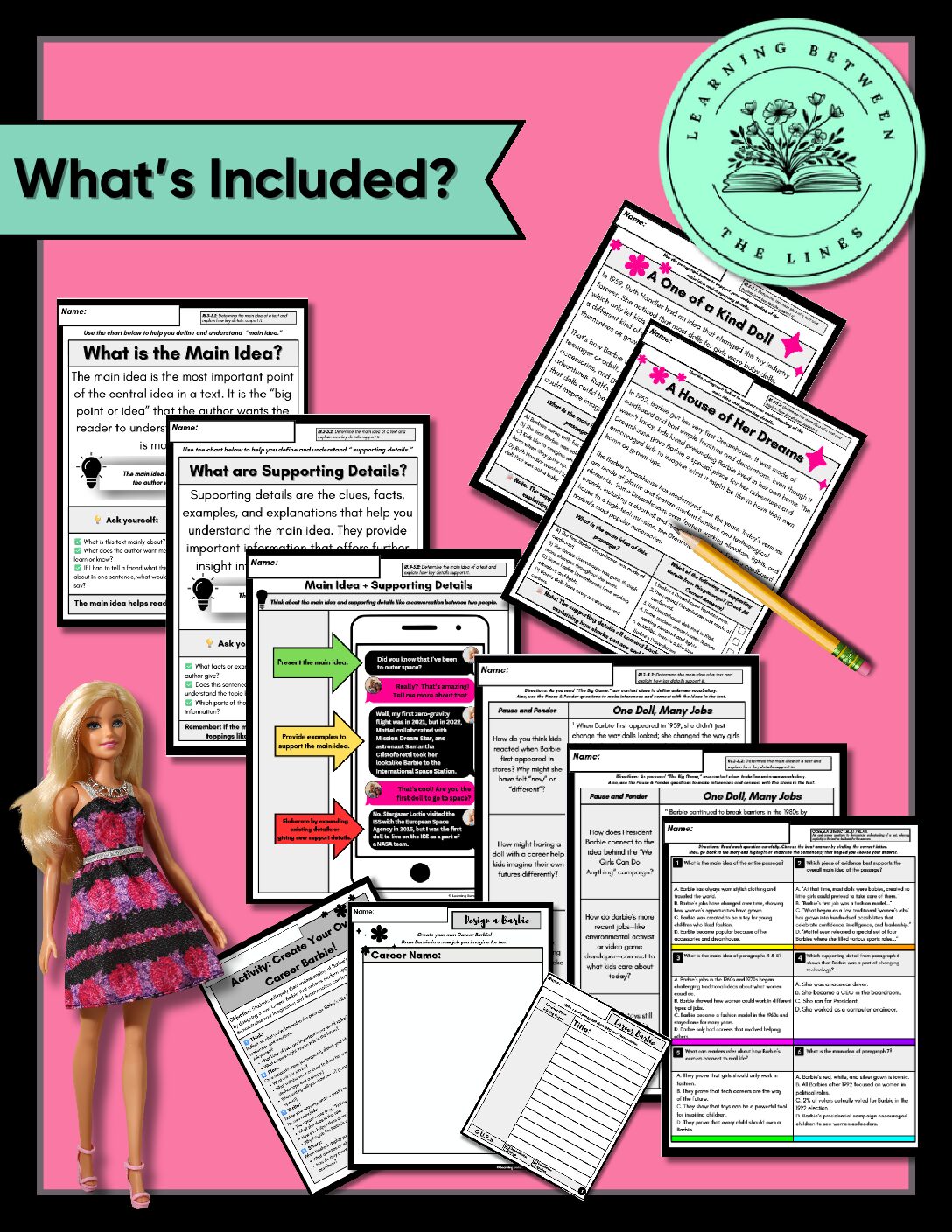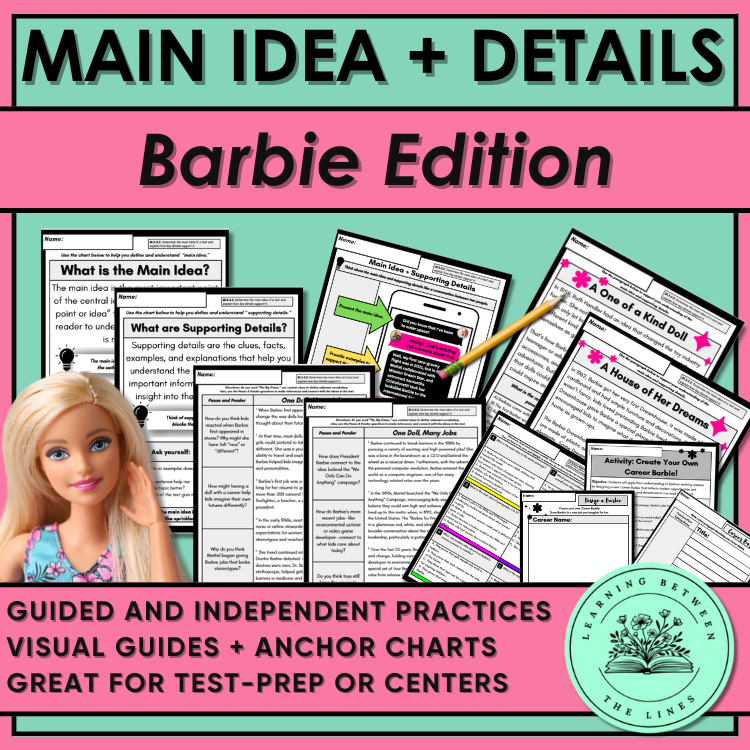 Bring learning to life with this Barbie-themed nonfiction reading skills resource — the perfect way to help students master main idea and supporting details through engaging, purposeful practice. Inspired by i-Ready–style lessons, this resource combines guided instruction, scaffolded comprehension, and independent application to build confidence and test readiness for PSSA, STAAR, AIR, and PARCC assessments.