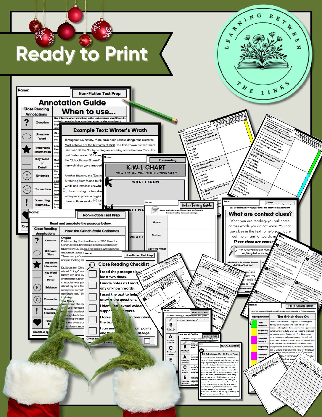 Bring holiday learning to life with this engaging non-fiction close-reading resource exploring the history, impact, and legacy of How the Grinch Stole Christmas! Perfect for December lessons, this resource strengthens background knowledge, annotation skills, and text-based writing while keeping students motivated and excited about reading. Modeled after high-quality close reading programs such as i-Ready, it provides scaffolded support for comprehension and writing.