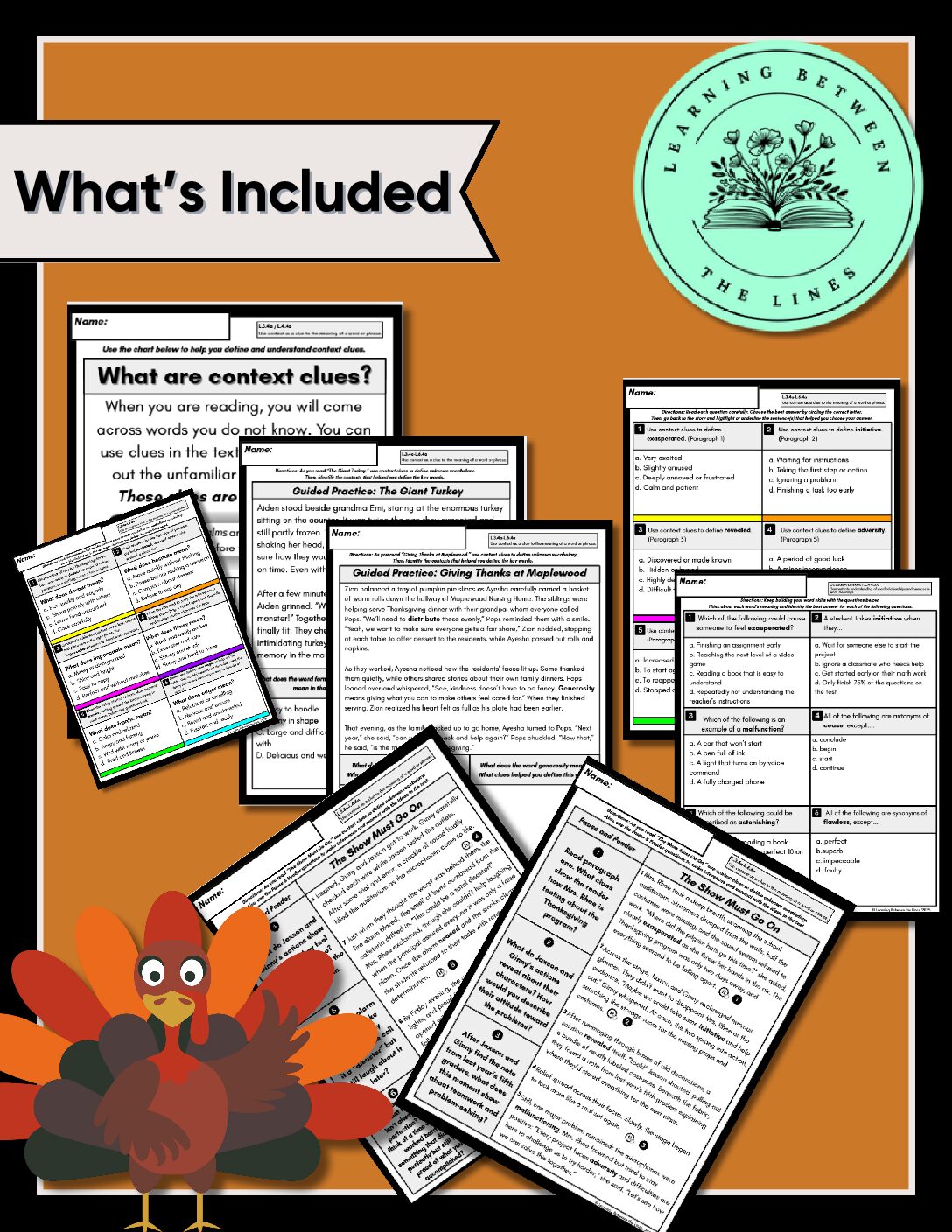 Allow your students to celebrate the season while developing essential reading skills, vocabulary, and strategies for identifying context clues. This Thanksgiving, turn learning into a feast of fun and knowledge!