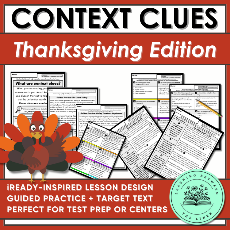 Bring some fall fun into your classroom with this Thanksgiving-themed Context Clues resource! Perfect for Autumn enrichment, guided practice, or remediation, this engaging set is designed for grades 3–6 and modeled after the popular iReady reading skills practice format.